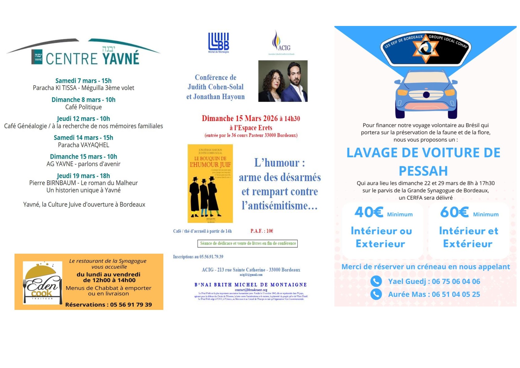 Dimanche 15 mars Conférence Judith Cohen Solal et Jonathan Hayoun